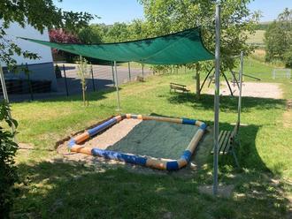 Eine weitere Aufwertung erhielt der Ruitscher Spielplatz in den Wiesen, einer der schönsten Spielplätze auf dem Maifeld, Anfang Juni durch die Installation eines neuen Sonnensegels, was über den Sandkasten angebracht wurde.