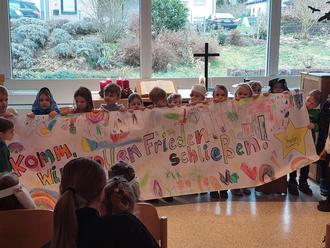 In der Polcher Kindertagesstätte „Schwalbennest“ haben sich die künftigen Schulkinder mit dem Thema „Frieden“ beschäftigt und ein Transparent gestaltet. Dieses hängt gut sichtbar in der Kita und verkündet die Friedensbotschaft, die nicht nur an Weihnachten für alle Menschen weltweit von so großer Bedeutung ist.