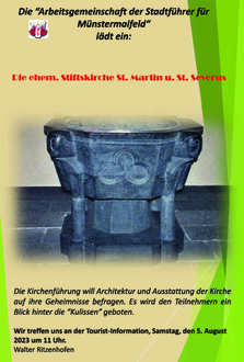 Um 11 Uhr beginnt eine Kirchenführung in der ehem. Stiftskirche St. Martin u. St. Severus. Dabei wird den Teilnehmern ein Blick hinter die „Kulissen“ geboten.