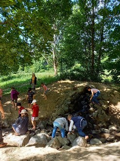 Die dritte Woche startete mit leider reichlich Wolken, was jedoch keinen davon abhielt nach Mertloch auf den Wasserspielplatz zu wandern. Nach der anstrengenden Wanderung von Polch nach Mertloch konnte vor Ort gespielt und geplanscht werden. Am Nachmittag waren alle froh, mit dem Bus zurück nach Polch zu fahren. Zwei Tage später stand bereits der nächste Ausflug auf dem Programm. Dieses Mal ging es nach Nettersheim in den Naturparcour Arboretum. Voller Vorfreude stiegen alle Kinder in den Bus, mit dem Wissen, das sie sich mal so richtig in den Matsch werfen konnten. Leider spielte das Wetter vor Ort nicht mit und der Ausflug musste kurzfristig abgebrochen werden. Die Kinder hatten ihren Spaß, weil sie aufgrund des starken Regens doch pitschnass wurden und somit wenigstens in Pfützen springen durften. Viele Kinder konnten den Ausflug nichtsdestotrotz genießen, weil sie die lange Busfahrt genutzt hatten Freundschaftsarmbändchen, Schlüsselanhänger u.ä. zu knüpfen. Am letzten Tag des Ferienprogramms wurde auf Wunsch der Kinder nochmals das Spiel Fuchs und Hase gemeinsam mit allen gespielt. Die ganze Halle wurde gemeinsam in einen Wald an Verstecken verwandelt, um sicher den Füchsen zu entkommen.