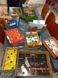 In allen drei Wochen konnten die Kinder in der Sporthalle spielen und toben. Insbesondere die vielseitigen Kreativangebote wurden von den Kindern gerne angenommen. So entstanden Tiere aus Eierkartons, bunte Masken, Diamond Painting Sticker, Bügelperlenbilder, Fingerpuppen, Schlüsselanhänger aus Schrumpffolie, ein gemeinsam angefertigtes Riesenausmalbild sowie spontan gebaute Pokale von klein bis groß für die vielen fußballbegeisterten Kinder. Außerdem wurde der nahegelegene Spielplatz hin und wieder besucht. wenn es das Wetter zuließ.