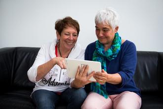 Die Digital-Botschafter bieten allen älteren Menschen auf dem Maifeld kostenfreie Hilfe bei der Bedienung von Smartphone und Tablet an.