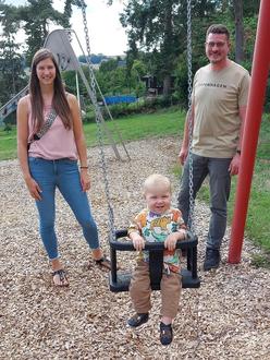 „Manchmal mahlen Verwaltungsmühlen doch schnell“, so bedankte sich Maren Gilgenbach für ungewohnt schnelles Handeln der Ochtendunger Gemeindeverwaltung. Sie hatte im Sinne ihres Sohnes Matteo nämlich kürzlich angeregt, eine der vier Schaukelsitze der beiden Doppelschaukeln auf dem Spielplatz „Im Linnerich“ durch einen babygerechten Schaukelsitz zu ersetzen. „Und siehe da, ein kleines Wunder geschah“, denn flugs suchte und bestellte der 2. Ortsbeigeordnete Sascha Lagodny einen solchen Sitz und montierte das schnell gelieferte „Ersatzteil“ auch. Kürzlich konnte Matteo diesen Schaukelsitz nun probeschaukeln und hatte sichtlich Spaß dabei.