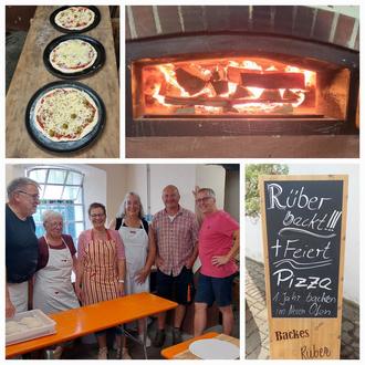 Da der Ofen aber mehr kann als nur Brot und Kuchen wurde nachmittags dann auf Pizzabacken umgestellt. Gerhard und Anneliese Krechel, Dieter und Gisela Pulze, Horst und Claudia Rühle formten, belegten und backten die Pizzen. Im kleinen Kreis der Backkursteilnehmer, wurde in gemütlicher Runde bei Pizza und kalten Getränken rund um das Backes das erste Backjahr im neuen Ofen gebührend gefeiert. Eine mehr als gelungene Veranstaltung!