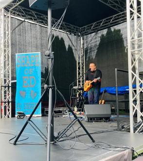 Nur eine Woche später stand bereits das nächste Highlight auf der Bühne: schwarzes Shirt vor schwarzer Bühne – allein die Gitarre sticht ein wenig heraus. Fast noch unscheinbar beim ersten Anblick änderte sich die Sicht komplett bei den ersten Tönen. Jürgen „Josh“ Hallfell brachte in seinem Programm „Shape of Ed“ die größten Hits von Ed Sheeran auf die Bühne. Ganz wie das Original begleitete er sich selbst, nur mit Hilfe eines Loopers, der Rythmen und Töne aufnimmt und dann immer wieder abspielt. Gleich der erste Song „Castle on the Hill“ sorgte für Begeisterung. Gefühlvoll spielte Josh „Afterglow“, „Perfect“ oder auch „Thinking out loud“ und zog die Zuschauer damit voll in seinen Bann. Bei „Shape of you“ und den irischen Klängen von „Nancy Mulligan“ wurde dann nicht nur mitgesungen, sondern auch getanzt. Allein mit seiner Stimme und einem Instrument sorgte der frühere Sänger von „Sidewalk“ für eine grandiose Stimmung und mit seinen Anekdoten auch für einige Lacher. Als letztes Lied gab es noch eine besondere Zugabe: „Am Fenster“ von der Band „City“ aus den späten 1970er Jahren. Damit zog es auch noch mal die etwas Älteren im Publikum von den Bänken. Was für ein Abend, ohne einen Tropfen Regen – „perfect“!