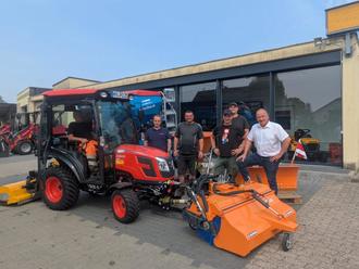 Stadtbürgermeister Gerd Klasen und Bauhof-Vorarbeiter Simon Sauer freuen sich über die Neuanschaffung: „Mit dem kleinen Traktor können wir noch flexibler arbeiten und unser Stadtbild weiterhin gepflegt und sauber halten. Das ist ein Gewinn für alle Polcherinnen und Polcher.“