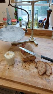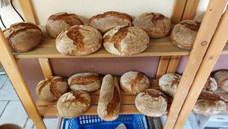 Als der Ofen nach ordentlichem Heizen 280 Grad erreicht hatte, war der Moment gekommen, das erste Brot in den Ofen zu schieben. Ein spannender, aber auch ehrwürdiger Moment für alle Beteiligten. Gleich der erste Backgang war ein toller Erfolg, die Brote waren ein Augenschmaus und der Gaumen konnte diesen Erfolg nur bestätigen.