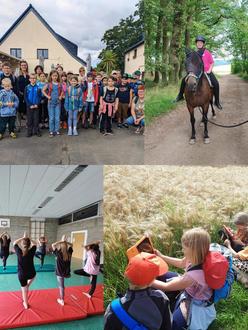 Auch abwechslungsreiche Ausflüge durften im diesjährigen Sommerferienprogramm nicht fehlen. Ein besonderer und erlebnisreicher Tag mit einem bunten Programm erwartete die Ferienkinder auf dem Berghof Wolken. Neben dem Füttern und Kennenlernen der Hoftiere bereitete Reitpädagogin und Hofbesitzerin Diana Lütkemeier verschiedene Spiel- und Kreativangebote für die Kids vor, wie z.B. ein Steckenpferd-Parcours, Tauziehen oder Hufeisen bemalen. Highlight des Tages war der Austritt mit den Ponys und die "Mädchen gegen Jungs"- Wasserschlacht. Nicht zuletzt blieb den Kids viel Zeit zum freien Spielen, Toben und Chillen auf dem Hof. Zum Abschluss des Tages machten wir leckeres Stockbrot am Lagerfeuer und schauten uns einen Pony-Film auf der Leinwand an.