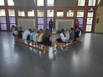 Die ca. 20 Lonniger Grundschulkinder sind hoch motiviert dabei. In sehr vertrauensvolle Atmosphäre werden in Rollenspielen Konfliktsituationen aus dem Alltag theoretisch besprochen und praktisch geübt. Die Kinder sind vom Löwentraining und Katja Blumenthal begeistert.