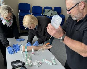 Die erste Fortbildung galt der rettungsmedizinischen Behandlung des Schocks. Nach einem kurzen Vortrag, wurden parktische Skills geübt. Die Ausbildung endete mit einem komplexen Gruppen-Notfalltraining.