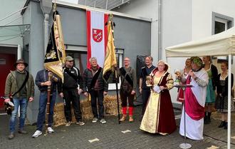 Mit einem kleinen Festumzug wurden die Majestäten Weinkönigin „Anke I.“ und der Trimbser Bacchus mit seinen hübschen Bacchantinnen in ihren Residenzen durch Delegationen und Fahnenabordnungen der örtlichen Vereine und Gruppierungen abgeholt. Die Zugspitze bildete erstmals der festlich geschmückte Unimog von Stefan Kickertz. Von der Straße
