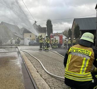 Samstag, 28.10.2023, 16:00 Uhr, Sirenengeheul und der Klang des Martinshorns erfüllt die Straßen von Pillig. Häuserbrand mit vermissten Personen lautet der Alarmierungsbefehl für die örtliche Feuerwehr. Die gemeinsame Abschlussübung der Feuerwehren aus den Ortsgemeinden Mertloch, Naunheim und Pillig war gestartet. Die ehemalige Raiffeisenkasse – Ecke Hauptstraße, Elztalstraße – war als Brandobjekt vorbereitet und viele interessierten Zuschauer konnten hier den Einsatz der Löschgruppen beobachten. Hand in Hand arbeiteten die Feuerwehrfrauen und -männer die ihnen gestellten Aufgaben, ab: Sicherung des Einsatzortes, Löschen des Brandes und natürlich Suchen und Bergen der vermissten Personen. Die Übung zeigte den anwesenden Zuschauer, dass sie sich im Ernstfall auf ihre Feuerwehren verlassen können.
