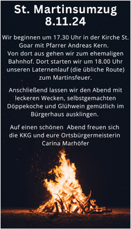 Am 12.11.2024 um 18:00 Uhr findet ein Treffen aller Beteiligten und Interessierten im Bereich Eventplanung im Bürgerhaus statt.