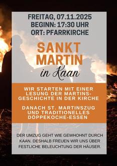 Am Freitag, den 07. November 2025 lädt der Stadtteil Kaan alle Kinder, Familien und Interessierten herzlich zum traditionellen Martinszug ein.