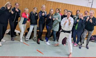 Es gibt Situationen, da bleibt nur die Flucht. Zum Beispiel beim Messerangriff. Ansonsten aber haben auch vermeintlich schwache Frauen und Mädchen durchaus Möglichkeiten, sich gegen Angreifer zu wehren. Mit der richtigen Technik und dem entsprechenden Willen. „Ihr müsst denken: Ich bin die Herdplatte. Wer mir zu nahe kommt, verbrennt sich“, erklärte Trainerin Michaela Buhl den zwölf Teilnehmerinnen des Selbstverteidigungskurses der Gleichstellungsbeauftragten der Verbandsgemeinde Maifeld, Manuela Bork.