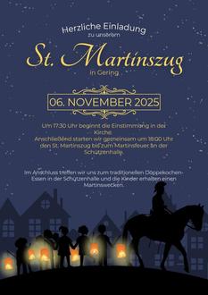 Am 06.11.2025 feiern wir unseren Laternenumzug, bei dem die Kinder mit bunten Laternen durch die Straßen in Gering ziehen. Dabei singen wir Lieder über den mutigen Ritter Martin und erinnern uns daran, wie wichtig es ist, freundlich und hilfsbereit zu sein.