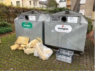 Nach dem Vandalismus auf dem Spielplatz mussten wir aktuell feststellen, dass an den Glascontainern Schaumstoffe abgelagert sind. Wer macht so was?
