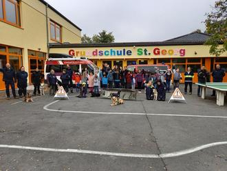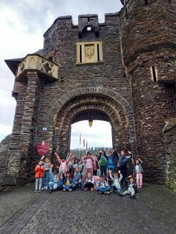 In der ersten Herbstferienwoche 16.10. – 20.10.2023 fand für 23 Grundschulkinder das BilBO Herbstferienprogramm in der Grundschule in Polch statt. Am Montag starteten alle Teilnehmenden mit einem ausgiebigen Frühstück in den Tag. Anschließend wurde die Gruppe von der „Bundesarbeitsgemeinschaft Rettungs- und Hundeführender Vereinigungen (BAG-RHV)“ besucht. Die BAG-RHV verwandelte den Schulhof in einen kleinen Trainingsplatz und zeigte den Kindern, wie die Hunde für Rettungseinsätze ausgebildet werden. Auch die Kinder konnten selbst aktiv werden und in Interaktion mit den Hunden treten, aber auch selbst erfahren, was er bedeutet durch einen dunklen Tunnel zu kriechen oder mit einer Seilbahn abgeseilt zu werden. Es war ein tolles Erlebnis für die gesamte Gruppe. Am Dienstag konnten die Kinder herbstliche Fensterdekoration basteln, Gesellschaftsspiele spielen oder sich bei tollen Bewegungsangeboten in der Sporthalle auspowern. Am Nachmittag besuchte die Gruppe bei schönstem Sonnenschein den nahegelegenen Spielplatz. Am Vormittag des dritten Tages stand das ersehnte Kürbisschnitzen auf dem Programm. Mit viel Geduld und Motivation hüllten die Grundschüler und Grundschülerinnen ihre Kürbisse aus und schnitzen tolle Gesichter. Nach dem Mittagessen wurden viele Spiele gespielt und sich in der Turnhalle ausgetobt. Am Donnerstag stand der Ausflug der Woche auf dem Programm. Um halb zehn fuhr der Bus von Polch aus los Richtung Cochem. Schon vom Moselufer aus bewunderten die Kinder die Burg. Nach einer kleinen, aber doch anstrengenden Wanderung erreichte die Gruppe das Ziel. Nachdem das Souvenirgeschäft geplündert wurde, startete die interaktive Führung. Zu Beginn kleideten sich alle Kinder dem Burgflair entsprechend. Anschließend wurde die Burg erkundet. Das Highlight des Tages war der letzte Raum. Hier konnten die Kinder ein Kettenhemd und Teile einer Ritterrüstung anprobieren, ein Spinnrad bedienen und echte Schwerter einmal anfassen. Nach dieser aufregenden und spannenden Führung fuhr die Gruppe um 15:00 Uhr zurück nach Polch. Den letzten Tag verbrachte die Gruppe etwas ruhiger in der Schule. Es war deutlich zu spüren, dass viele Kinder von der abwechslungsreichen Woche müde waren. Daher wurden Kürbisse und Fledermäuse gebastelt, Spiele gespielt, in der Kuschelecke entspannt oder noch einmal in der Sporthalle gespielt. Am Ende waren sich alle Kinder einig, dass es eine tolle Woche war. Viele freuten sich schon auf die zweite Woche und damit auf das Maifelder Herbstferienprogramm. Auch die Verantwortliche Katharina Schweitzer, Schulsozialarbeitern und Leitung des BilBO Projektes an der Grundschule Polch, blickt auf eine tolle Woche zurück und bedankt sich bei den Teamer*innen für ihren Einsatz. Alle Kinder, Teamer*innen und Verantwortlichen freuen sich schon auf die Ferienprogramme im nächsten Jahr.