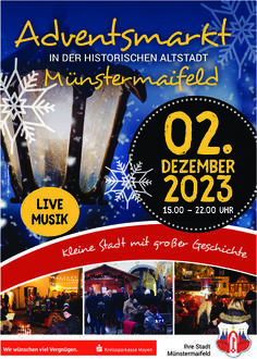 Unser diesjähriger Adventsmarkt findet am 02.12.2023 statt. Sollten Sie Interesse haben daran teilzunehmen, füllen Sie bitte beigefügtes Anmeldeformular aus.