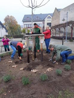 Schon viele Jahre lang stiftet der Obst- und Gartenbauverein jährlich im Herbst der Ochtendunger Öffentlichkeit einen Baum, so auch in diesem Jahr. Ausgesucht wurde das auf dem Raiffeisenplatz nach dem Absterben des dortigen Walnussbaums frei gewordene Pflanzbeet. Als Nachfolger wurde eine Esskastanie ausgewählt. Aber es erfolgte nicht nur eine Ersatzpflanzung, nein die gesamte Bepflanzung des Pflanzbeets wurde erneut. Der Baum wurde mit Lavendelsträuchern eingerahmt und im gesamten Beet 600 Tulpen- und Narzissenzwiebeln in die Erde gebracht. Das kommende Frühjahr wird farbig!