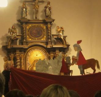 Darstellung der Martinsgeschichte durch die Erzieherinnen unserer KiTa „Traumland“ in der Filialkirche in Trimbs.