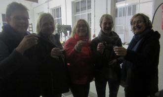 Katholische Frauengemeinschaft beim Verkauf von Getränken und Leckereien in der alten Schmiede: v.l.n.r. Evemie Müller, Brigitte Krämer-Michels, Anita Müller, Petra Schmitt und Heide Sagner-Bröder.