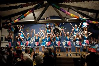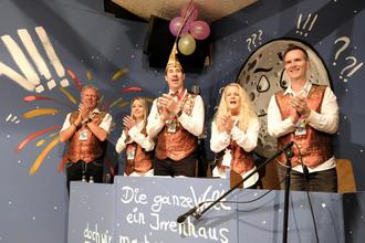 Zum Höhepunkt der ersten Halbzeit kam die Showtanzgruppe „Rheinzauber“ aus St. Sebastian auf die Bühne. Sie präsentierten 70 selbstgenähte Kostüme und wechselten dreimal das Outfit. Ihr Tanz sorgte für große Stimmung im Saal. Es war beeindruckend, dass die älteste Akteurin auf der Bühne - sage und schreibe - 77 Jahre alt war. Trainiert wird die Gruppe von Patricia Maur. Die Kostümgestaltung lag in den Händen von Jutta Buss.