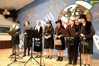 „Die Trauerschnallen“ berichteten anschließend in Gesangsform die Neuigkeiten aus dem Dorf. Hier standen auf der Bühne: