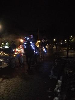 Die hell erleuchteten Pferden sowie die mitgeführten Kutschen boten ein tolles Bild beim Zug durch die Wellinger Straßen. Für die zahlreichen Kinder am Straßenrand hatte der Nikolaus natürlich auch was mitgebracht (von Bernd Theisges gesponsert).
