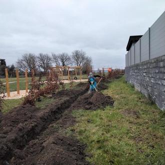 Als Samstag früh der Boden noch gefroren war, kam Herr Robin Kettel, Anwohner im Kleegarten, spontan und ehrenamtlich mit seinem Bagger zu Hilfe. Vielen, vielen Dank dafür und auch Danke an alle, die tatkräftig wieder mit angepackt haben, sei es in Form von Baggerarbeiten, Spenden, Pflanzen und Bäume eingraben oder auch Plastikzettel von den Bäumen und Sträuchern entfernen. Alles hilft und trägt zum Gelingen solcher Aktionen bei. Dank der guten Vorbereitungen und Arbeiten der städtischen Mitarbeiter vom Bauhof und der Unterstützung und Hilfe Einzelner Polcher Bürger konnten rechtzeitig vor dem Winter alle Bäume und Sträucher in die Erde gebracht und unser wirklich großes Pflanzvorhaben in diesem Jahr umgesetzt werden. Samstagnachmittag waren die Pflanzarbeiten abgeschlossen.