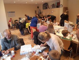 Neuer Rekord! 23 bastelbegeisterte Kids trafen sich am Dorftreff, um diesmal eine Lebkuchen-Lok zu bauen. Mit viel Begeisterung gingen alle mit Hilfe der Eltern ans Werk, um einzigartige Werke zu gestalten. Trotz einiger Schwierigkeiten wurde jede Lok auf die ein oder andere Weise ein Meisterwerk, worauf jeder stolz sein konnte. Eigentlich zum Essen viel zu schade.