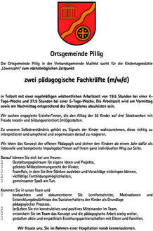 Die Ortsgemeinde Pillig in der Verbandsgemeinde Maifeld sucht für die Kindertagesstätte