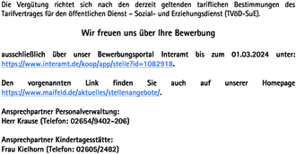 Die Vergütung richtet sich nach den derzeit geltenden tariflichen Bestimmungen des Tarifvertrages für den öffentlichen Dienst – Sozial- und Erziehungsdienst (TVöD-SuE).