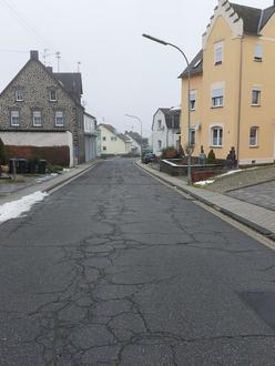 Die Bahnhofstraße in ihrem überholungsbedürftigen aktuellen Ausbauzustand.