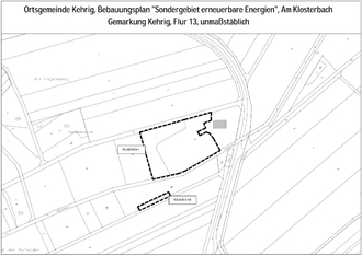 Der Ortsgemeinderat von Kehrig hat in der öffentlichen Sitzung am 12.09.2022 den Beschluss zur Aufstellung eines Bebauungsplanes für das „Sondergebiet erneuerbare Energien“ Am Klosterbach gefasst, um das förmliche Aufstellungsverfahren in Gang zu setzen. Darüber hinaus wurde am 20.02.2024 der Entwurf anerkannt sowie die frühzeitige Beteiligung der Öffentlichkeit in Form einer öffentlichen Auslegung des Bebauungsplanentwurfes gemäß § 3 Abs. 1 BauGB beschlossen.
