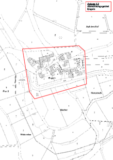 | d) Sind die jenseits der nach a) und b) angeordneten Tiefenbegrenzungslinie liegenden Grundstücksteile aufgrund der Umgebungsbebauung baulich oder in ähnlicher Weise selbständig nutzbar (Hinterbebauung in zweiter Baureihe), wird die Fläche bis zu einer Tiefe von 100 m zugrunde gelegt. | |