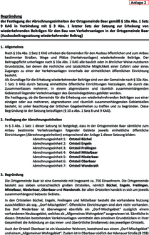 Die Begründung für die Ausgestaltung der einheitlichen öffentlichen Einrichtungen ist dieser Satzung als Anlage 2 beigefügt.