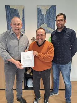 Bürgermeister Alfred Schomisch, Werkleiter Matthias Steffens und stv. Werkleiter Markus Atzor freuen sich über den Bewilligungsbescheid für den Neubau der Mischwasserbehandlung der Kläranlage (Foto: -st-)