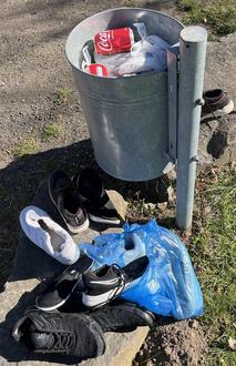 Die Bilder zeigen: Es handelt sich nicht um gelegentliche Abfälle nach einem Wanderpicknick. Es wird gezielt Müll mitgebracht (!) und abgeworfen statt ihn ordnungsgemäß zu entsorgen. Wem das noch nicht klar ist: Das ist zumindest eine kostspielige Ordnungswidrigkeit, kann aber - wie beim Katzenstreu mit Infektionsgefahr - auch eine Straftat sein.