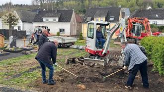 Am 16.04. widmeten die fleißigen Burschen sich dann den Grabentfernungen auf dem Friedhof in Langenfeld, hier unterstützt man sogar die zuständigen Ortsgemeinden Acht, Arft, Langscheid und Welschenbach: Mit zum Teil schwerem Gerät wurden insgesamt zwei Grabreihen entfernt und alles wieder in Ordnung gebracht, im Anschluss wurden die Fundamente und Grabsteine fachgerecht entsorgt.