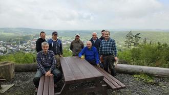 Willi Lück, Andreas Mannebach (sitzend), Rudi Müller, Josef Ant, Helmut Schmitt (sitzend), Günter Vogt, Tobias Thelen und Reiner Jünger am Aussichtspunkt am Plateau.