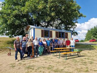 Zu einem besonderen Austausch luden die Mitglieder der Wacholderwacht Osteifel kürzlich Vertreterinnen und Vertreter der umliegenden Ortsgemeinden an den neu renovierten Wacholderwagen unterhalb des Büschbergs ein.