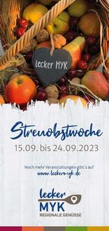 Vom 15. bis 24. September 2023 findet im Rahmen der Initiative „leckerMYK - Regionale Genüsse im Landkreis Mayen-Koblenz“, die „leckerMYK Streuobstwoche“ statt. Alle interessierten Genießer können sich auf eine Vielzahl an Aktionen und Veranstaltungen rund um das Thema Streuobst freuen.