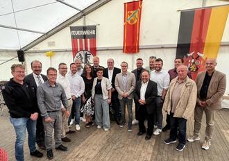 Lokale Kommunalpolitikerinnen und -politiker im festlich-entspannten Umfeld des Verbandsgemeinde Vordereifel-Feuerwehrfestes in Hausten