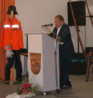 Bürgermeister Alfred Schomisch sagte in seiner Ansprache stolz: „‘Einer für alle, alle für einen!‘, dieses Motto nehmen die Feuerwehrmänner und -frauen in den Freiwilligen Feuerwehren unserer 27 Ortsgemeinden wörtlich. 365 Tage im Jahr, 7 Tage die Woche, 24 Stunden am Tag sind sie ständig in Bereitschaft. Ohne auf Ihren eigenen Vorteil ausgerichtet zu sein, engagieren Sie sich und tun mehr als nur ihre Pflicht.“