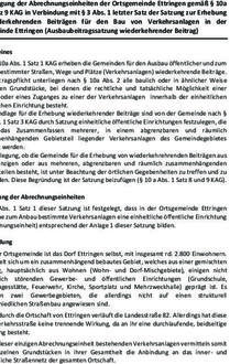(1) Sämtliche zum Anbau bestimmte Verkehrsanlagen von Ettringen bilden eine einheitliche öffentliche Einrichtung (Abrechnungseinheit), wie sie sich aus dem als Anlage 1 beigefügten Plan ergibt.