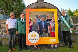 Über insgesamt 1.500 Euro aus der „evm-Ehrensache“ dürfen sich drei Vereine aus der Verbandsgemeinde Vordereifel freuen. Am 7. September übergab Berthold Nick von der evm gemeinsam mit Bürgermeister Alfred Schomisch den Spendenbetrag an die Vertreterinnen und Vertreter der Vereine.