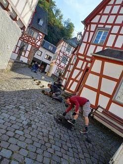 Auf der Brücke vor dem Viergiebelhaus wurden fehlende Pflastersteine ersetzt und beschädigte Steine ausgetauscht. Insgesamt hat das Dorfhelferteam 127 Steine eingesetzt. Parallel wurde das Beet an der Feuerwehr von einem zweiten Team von Unkraut befreit.