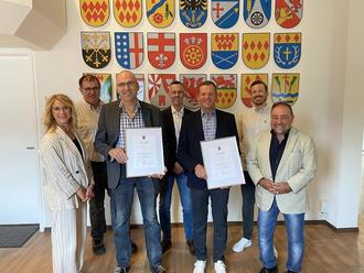 Als Zeichen der Anerkennung überreichte Bürgermeister Schomisch jedem der beiden Herren abschließend eine Urkunde sowie ein Präsent im Namen der Verbandsgemeinde Vordereifel.