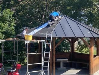 die Hütte auf dem Gemeindevorplatz hat nun auch eine Dachabdeckung. Dafür möchte ich mich ganz herzlich bei Hans-Dieter und Christian Wetzlar bedanken, die das kostenfrei für die Gemeinde erledigt haben.